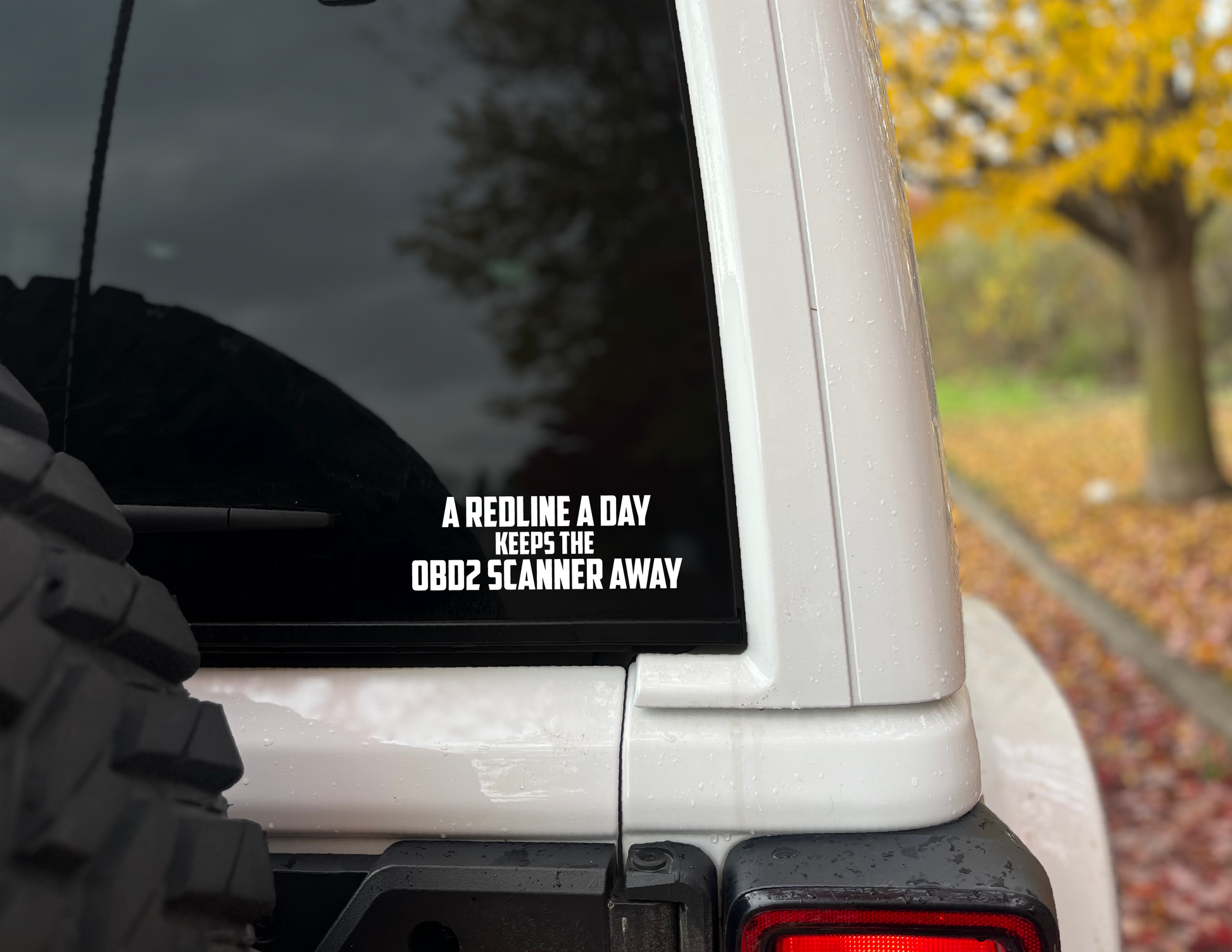 "A Redline a Day Keeps the OBD2 Scanner Away" Vinyl Decal