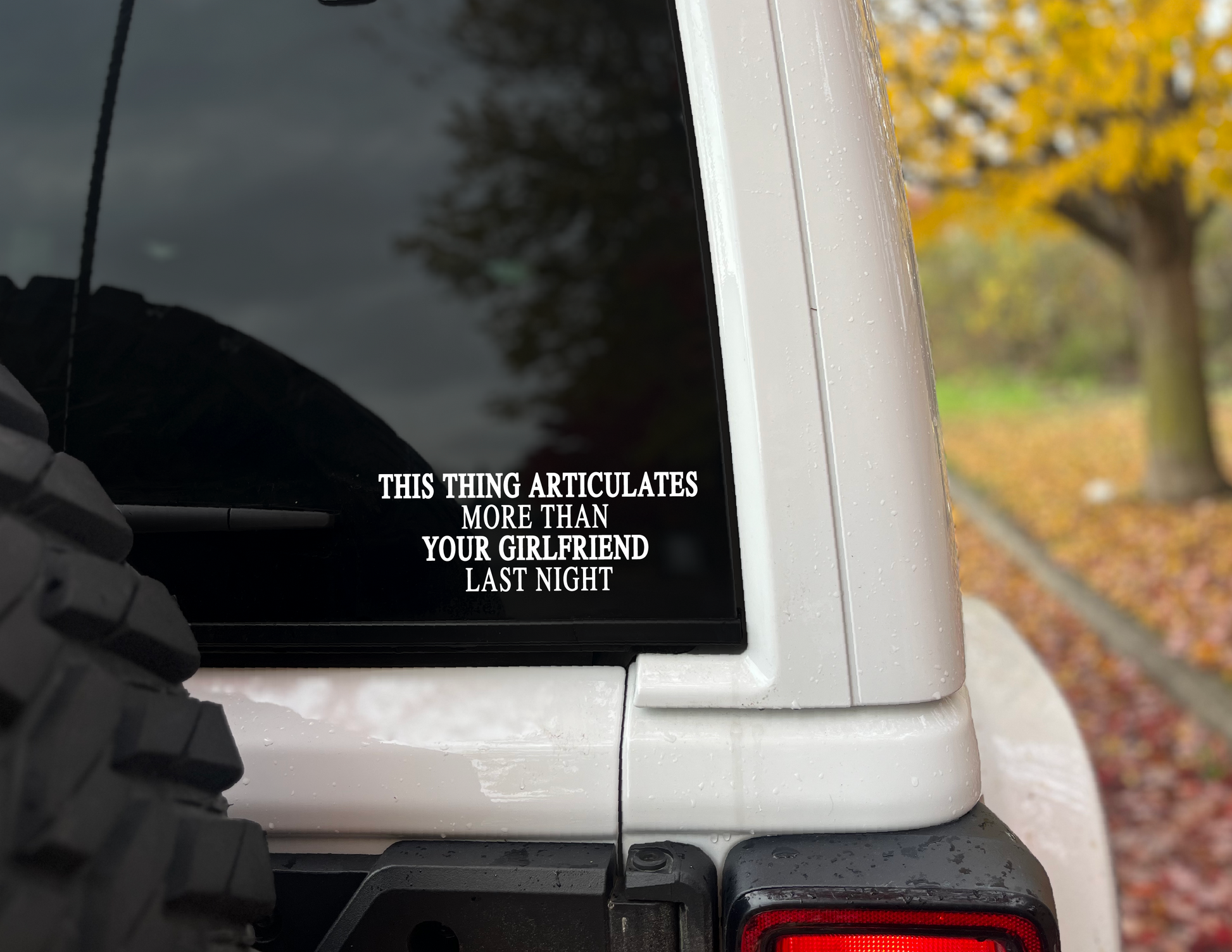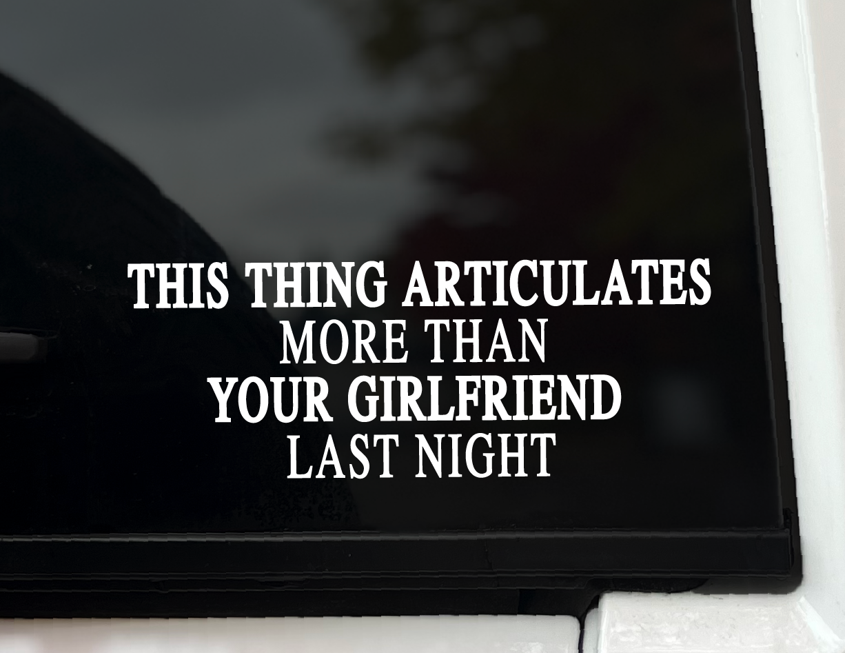 "Articulates More than Your Girlfriend Last Night" Vinyl Decal