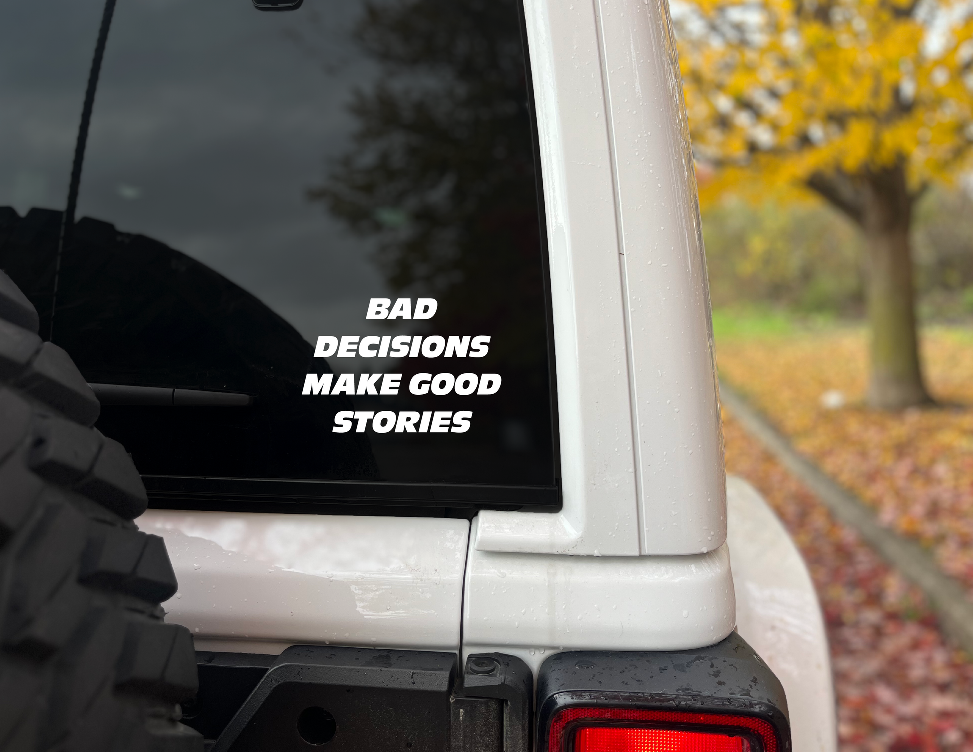 Available in various sizes and colors, this decal is for the off-roaders who know the best adventures happen when you throw caution to the wind. Ready to wear your bad decisions?