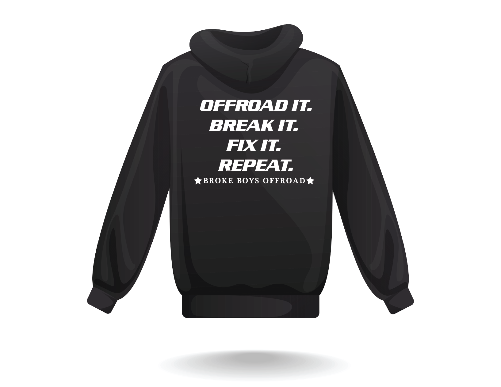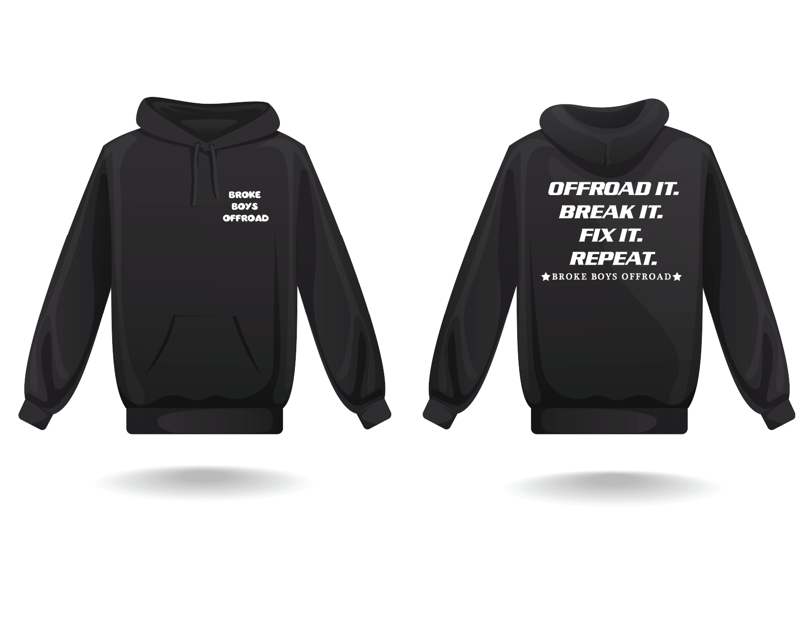 With "Broke Boys Offroad" on the chest and "Offroad it, Break it, Fix it, Repeat" on the back, this hoodie speaks to the heart of every off-road enthusiast. It’s all about the journey—dirt, sweat, and good times on the trail.