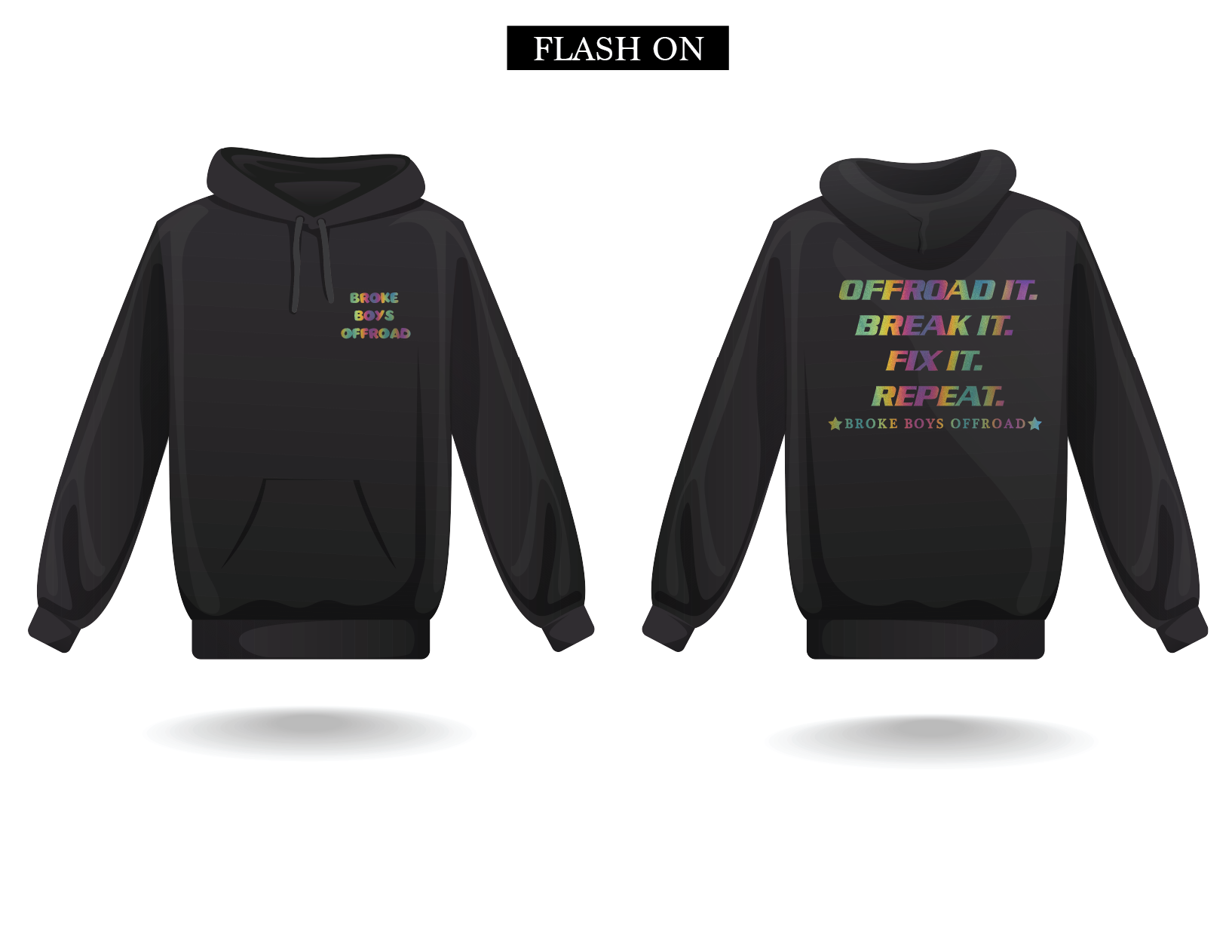 Featuring "Broke Boys Offroad" on the chest and the iconic "Offroad it, Break it, Fix it, Repeat" on the back, this hoodie speaks to those who live for the trails and the adventures that come with them. Whether you're wheeling under the stars on a night run or just adding some flair to your off-road gear, this hoodie ensures you're both seen and styled.