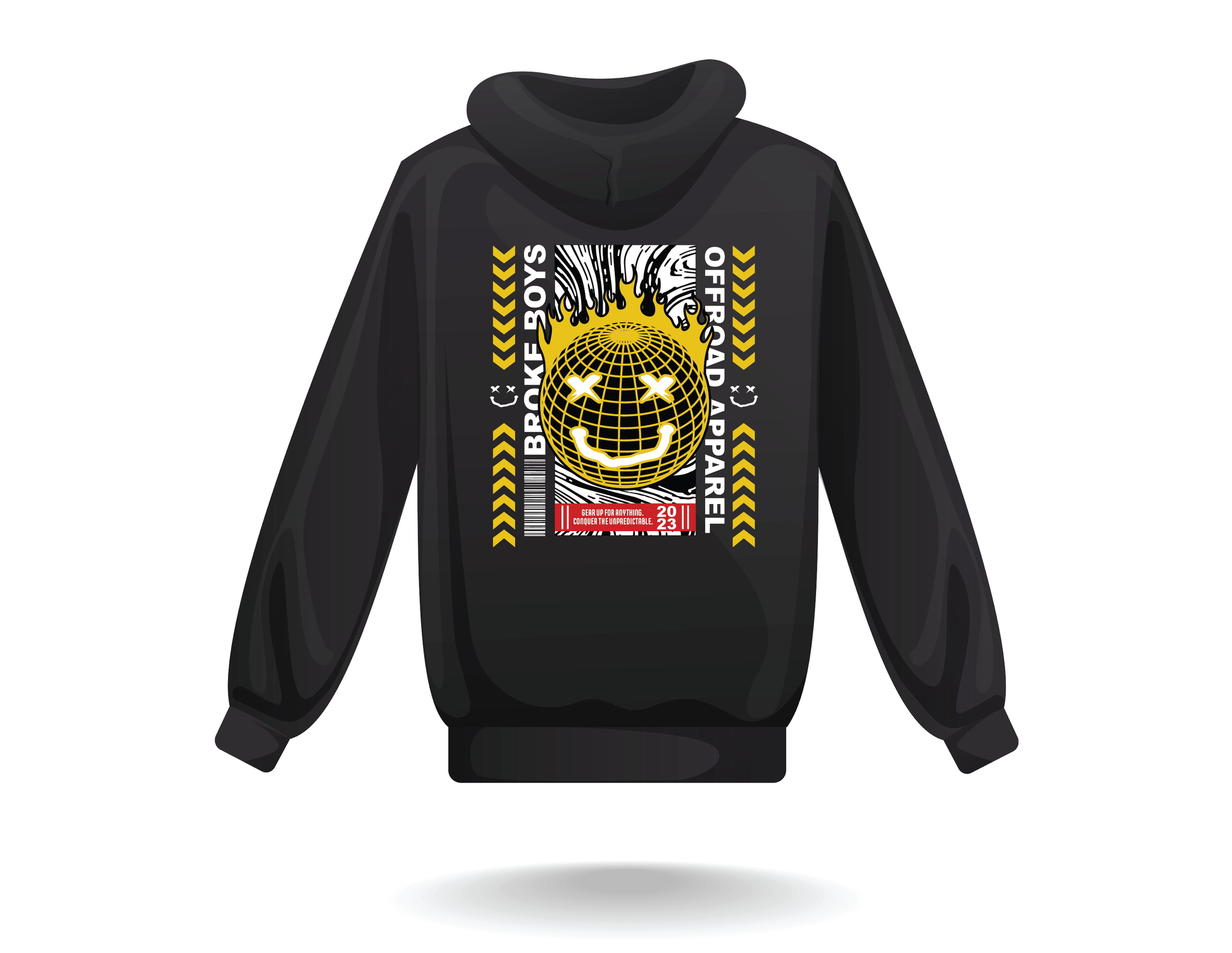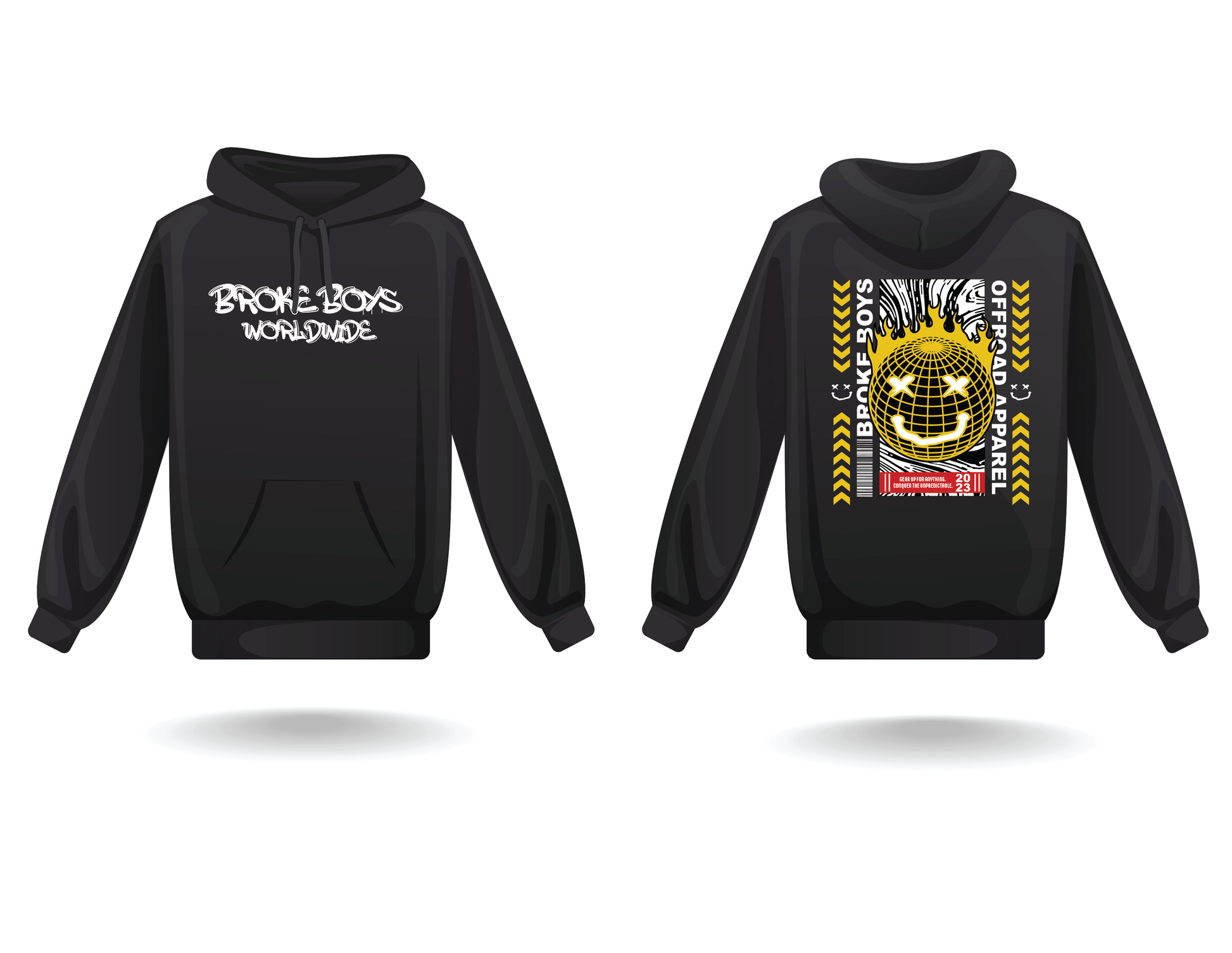 Subtly featuring a graffiti-themed "Broke Boys Worldwide" on the front and a dynamic Y2K-themed design on the back, this hoodie effortlessly embodies off-road cool.