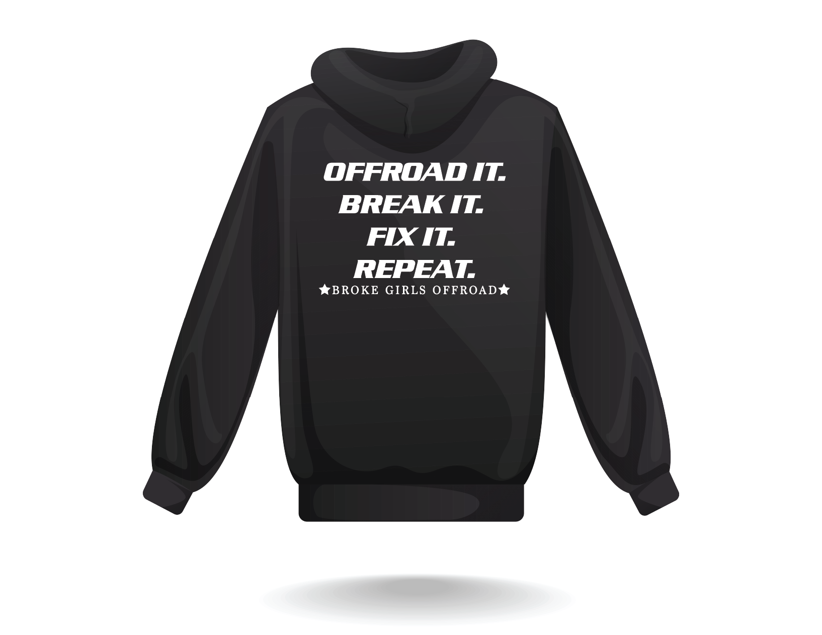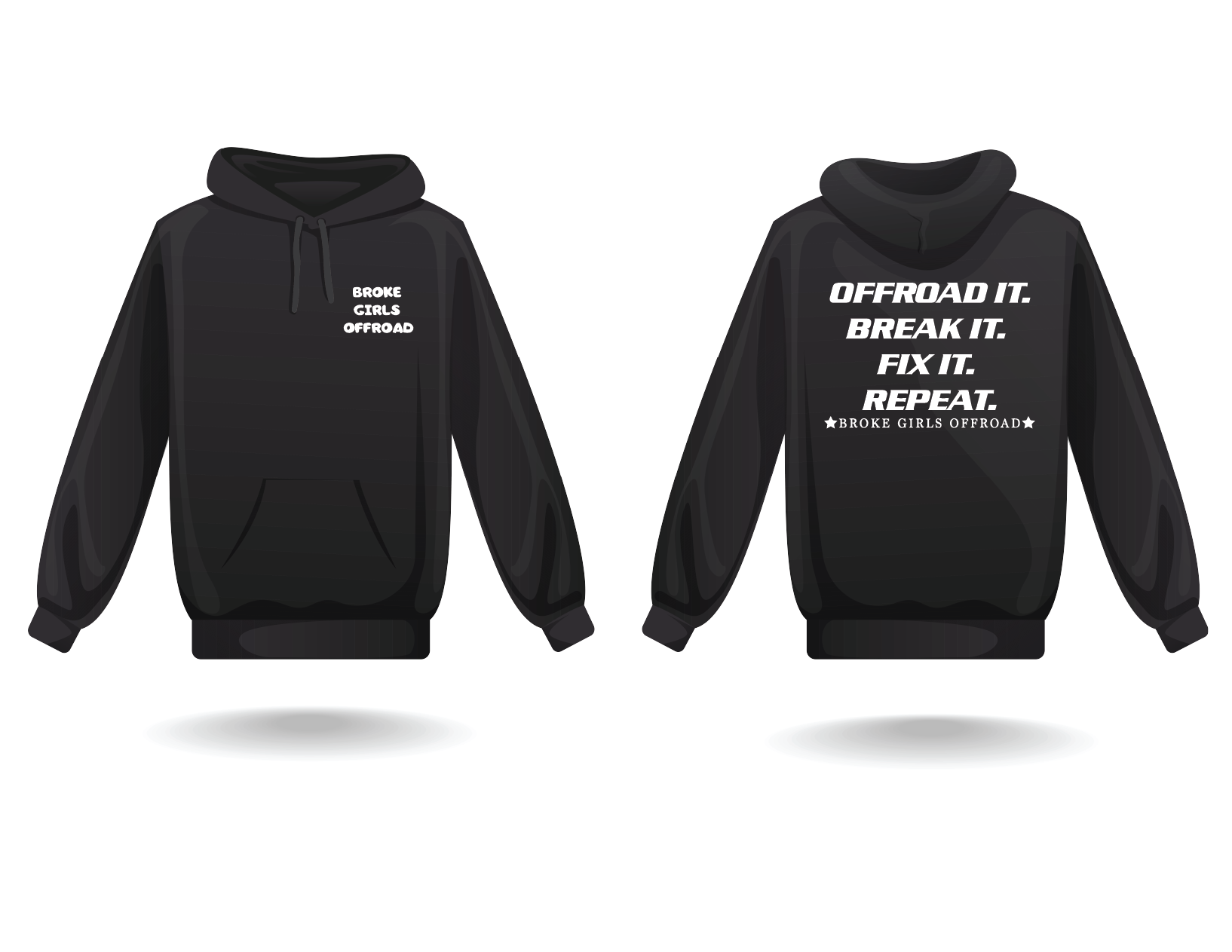 With "Broke Girls Offroad" on the chest and "Offroad it, Break it, Fix it, Repeat" on the back, this hoodie speaks to the heart of every off-road enthusiast. It’s all about the journey—dirt, sweat, and good times on the trail.