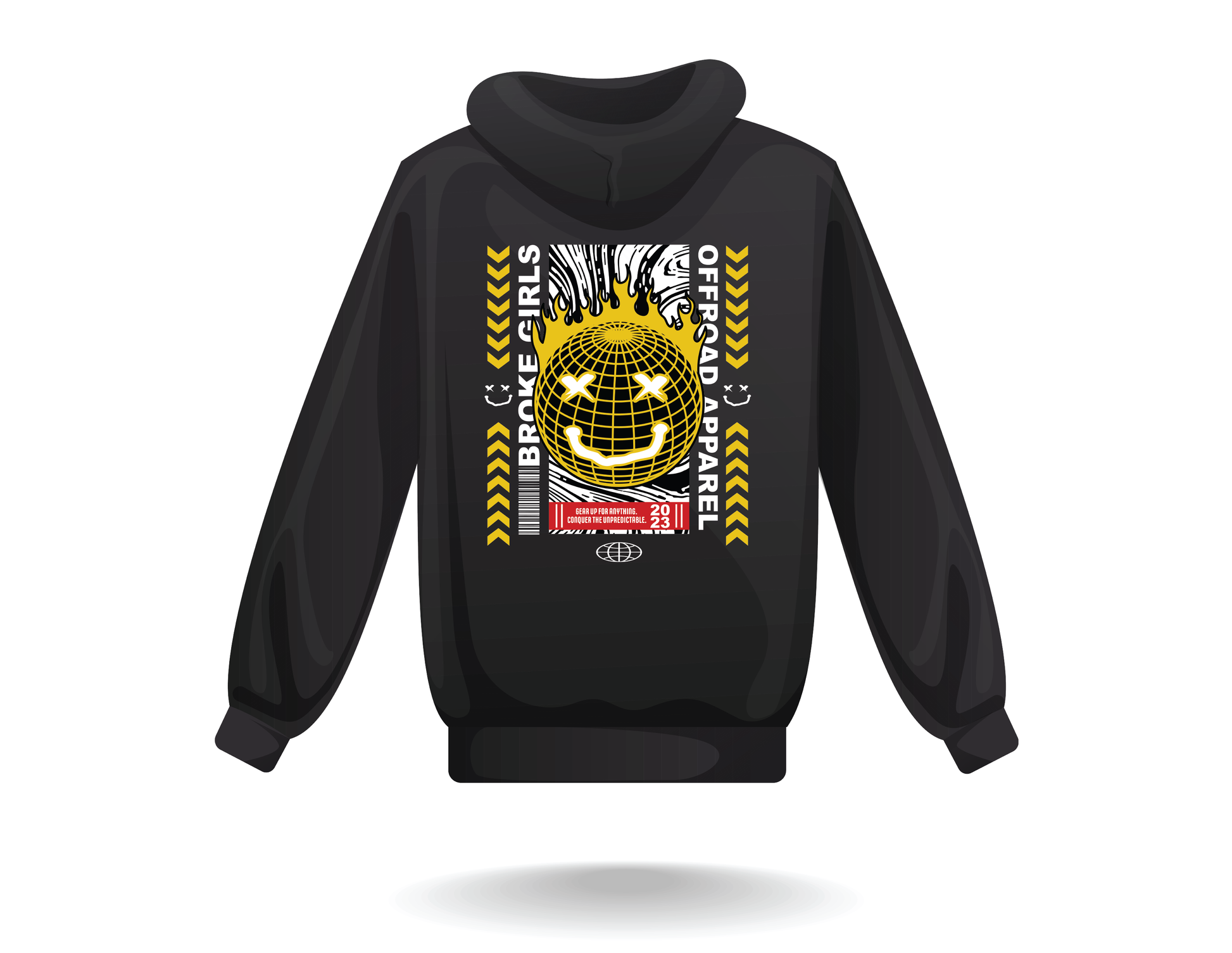 Subtly featuring a graffiti-themed "Broke Girls Worldwide" on the front and a dynamic Y2K-themed design on the back, this hoodie effortlessly embodies off-road cool.