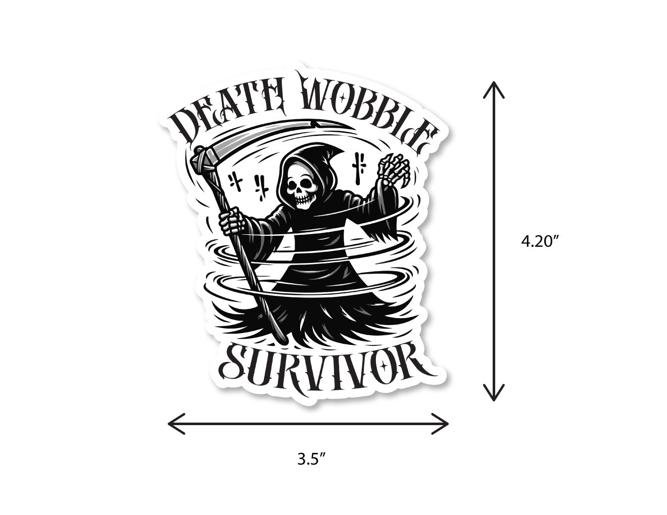 Whether you’ve tightened a few bolts, replaced a few parts, or just learned to ride it out, the death wobble didn’t take you down—it made you stronger. Slap this 3.5-inch sticker on your rig to let everyone know you’ve stared the death wobble reaper in the eyes and come out on top.