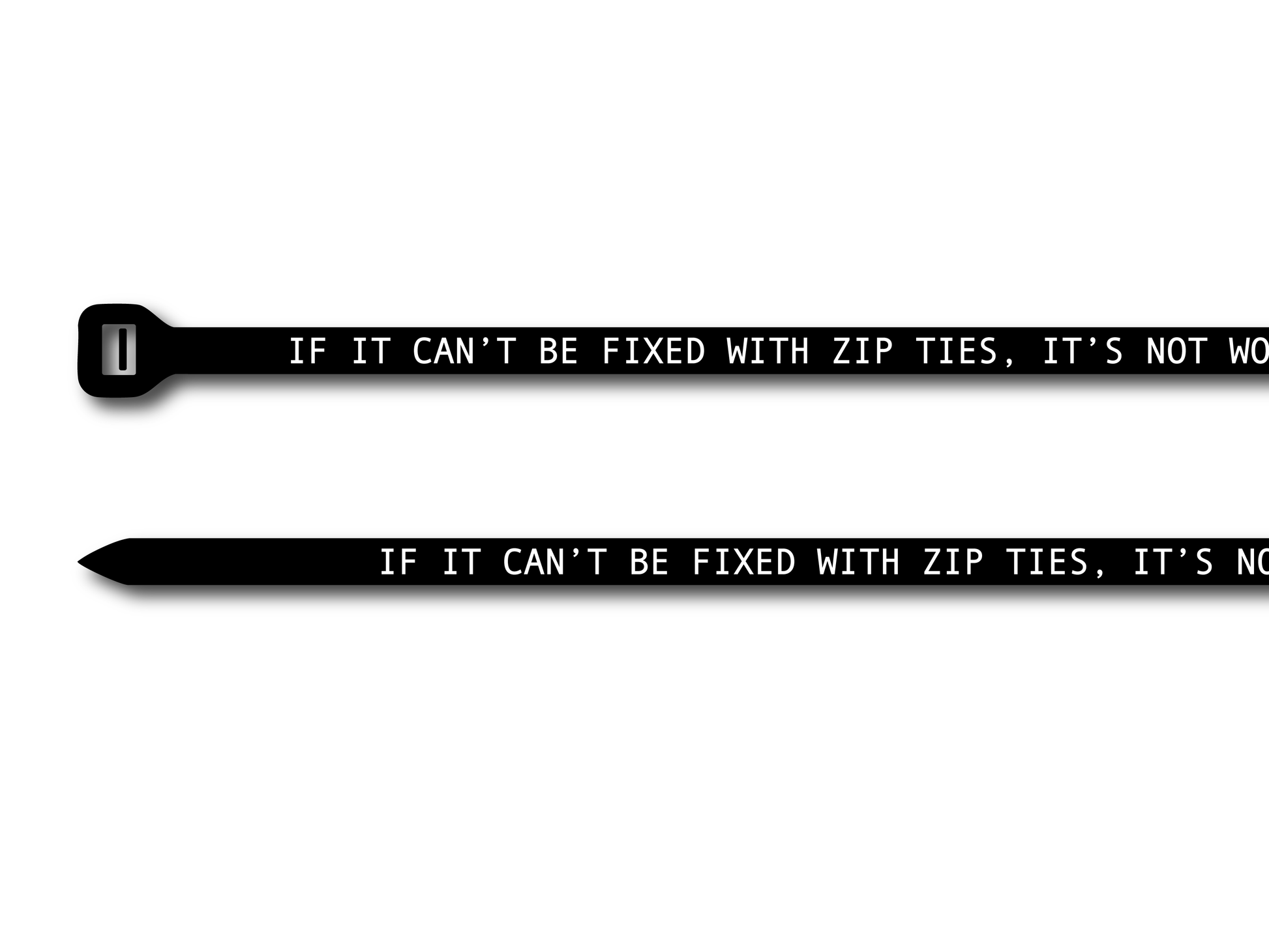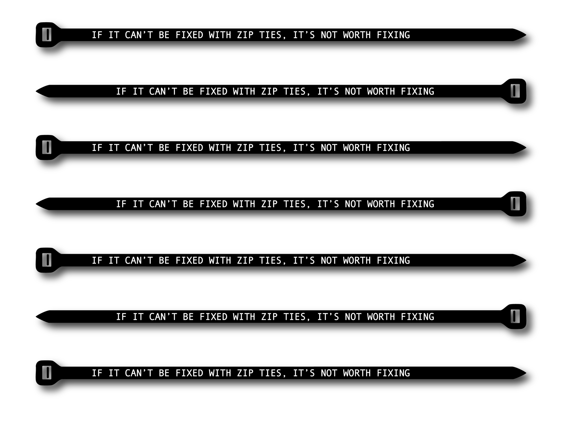 With "If It Can’t Be Fixed with Zip Ties, It’s Not Worth Fixing" printed right on it, this zip tie isn’t just holding things together—it’s proving a point. Keep a stash on hand, because if this won’t fix it, nothing will.