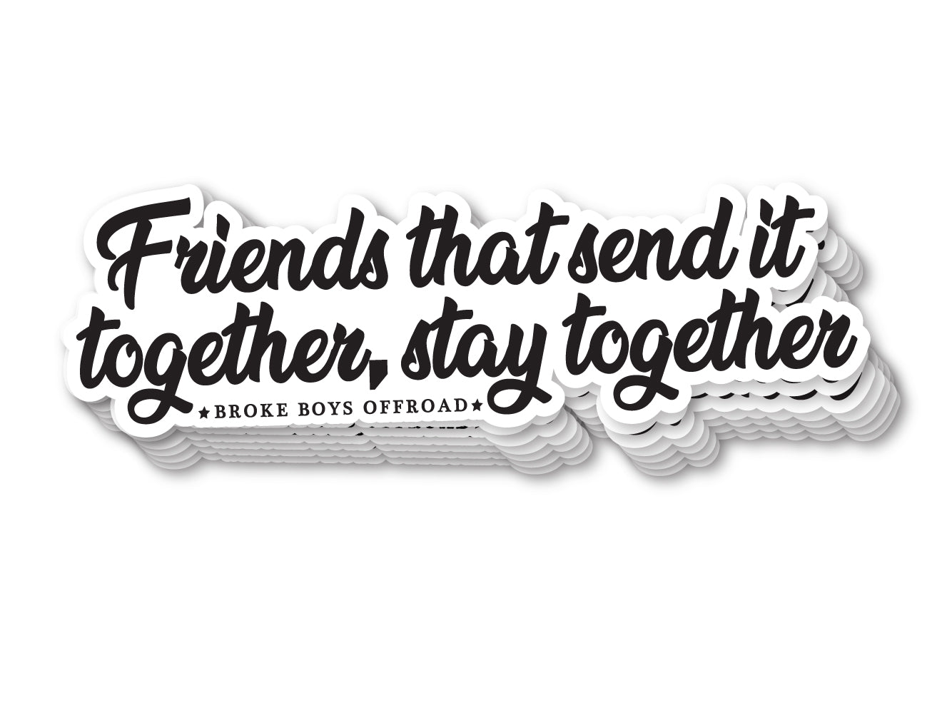 Introducing the "Friends That Send It Together, Stick Together" Offroad Sticker, a fun and inspiring reminder of the bonds that are formed through off-roading adventures.