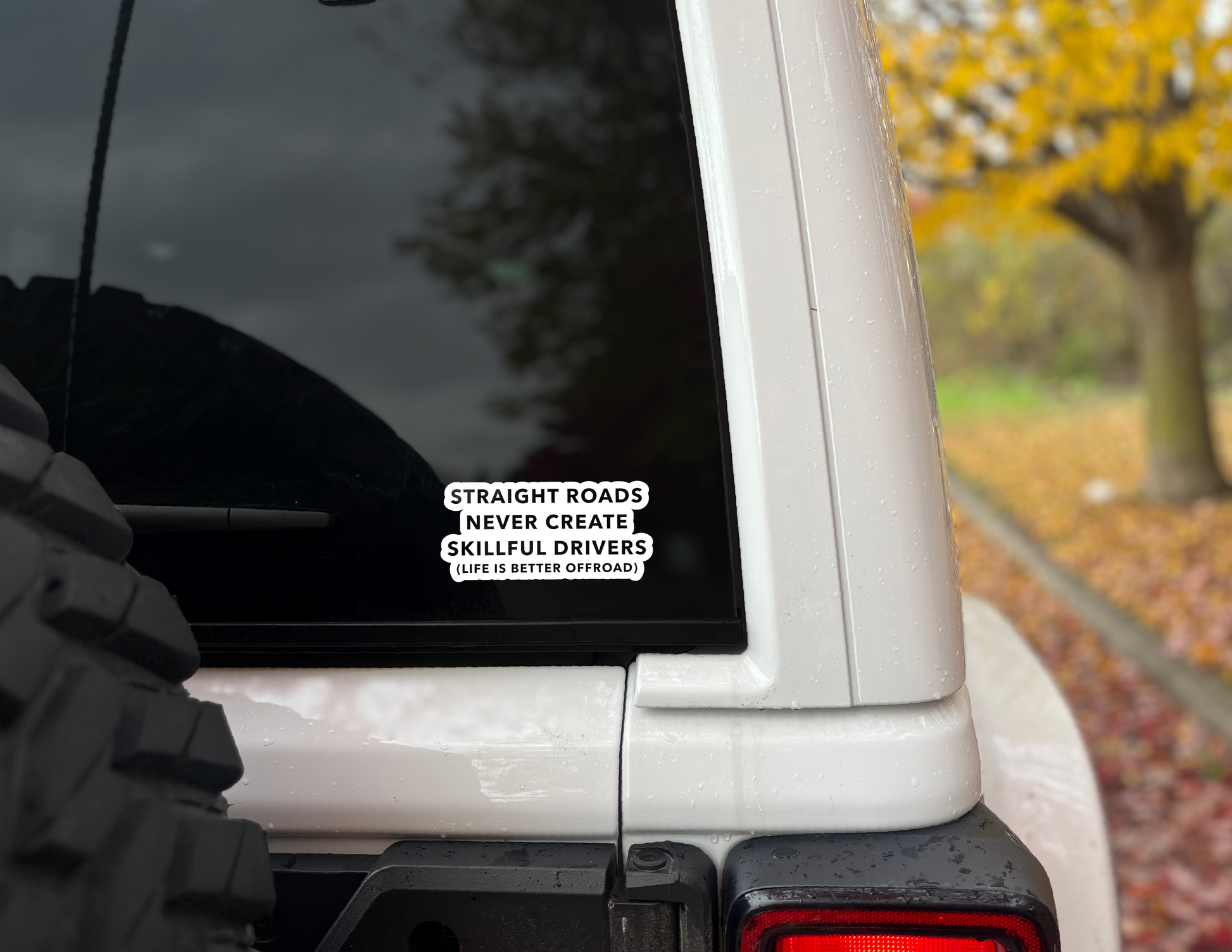 "Straight Roads Never Create Skillful Drivers" Vinyl Decal