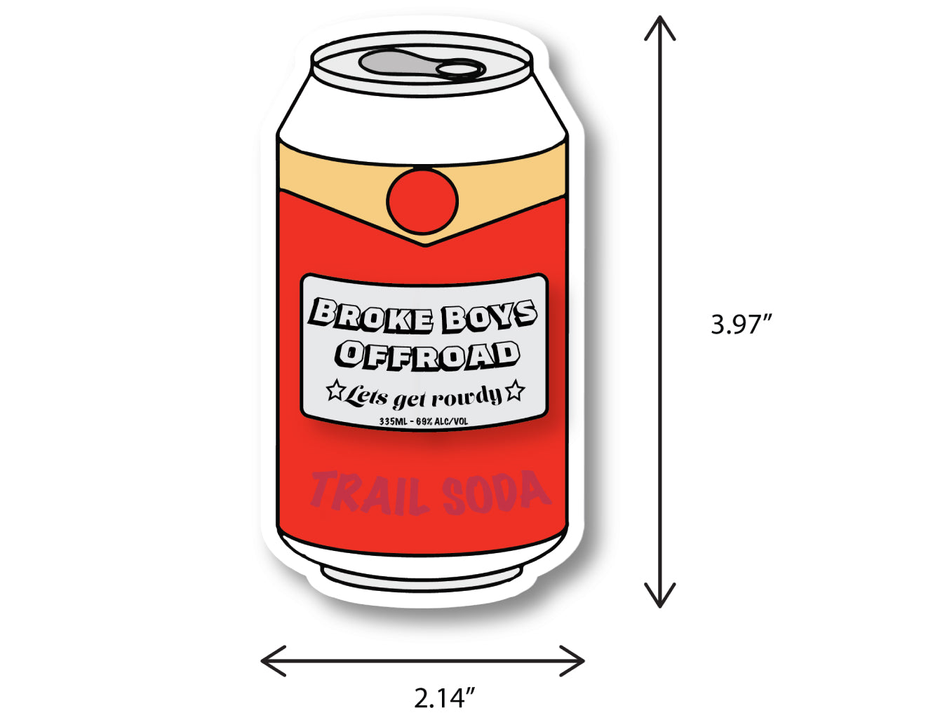 Crack open a cold one and hit the trails with our "Trail Soda" sticker! Made with premium vinyl, this sticker is perfect for showcasing your love for off-roading and cold brews.