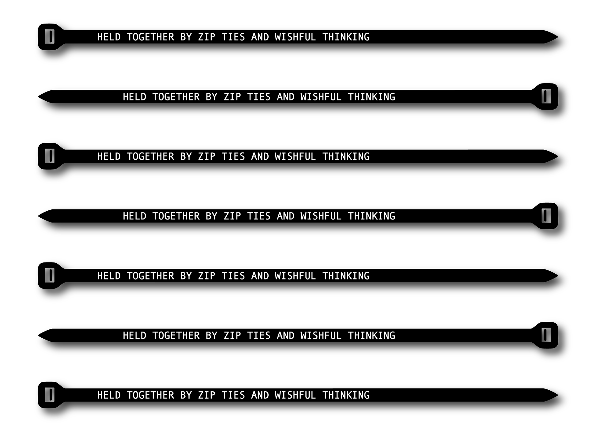 With "Held Together by Zip Ties and Wishful Thinking" printed right on it, this zip tie says what everyone’s already thinking. Toss a few in your trail kit, because let’s be honest—this isn’t the first or last time you’ll need them.