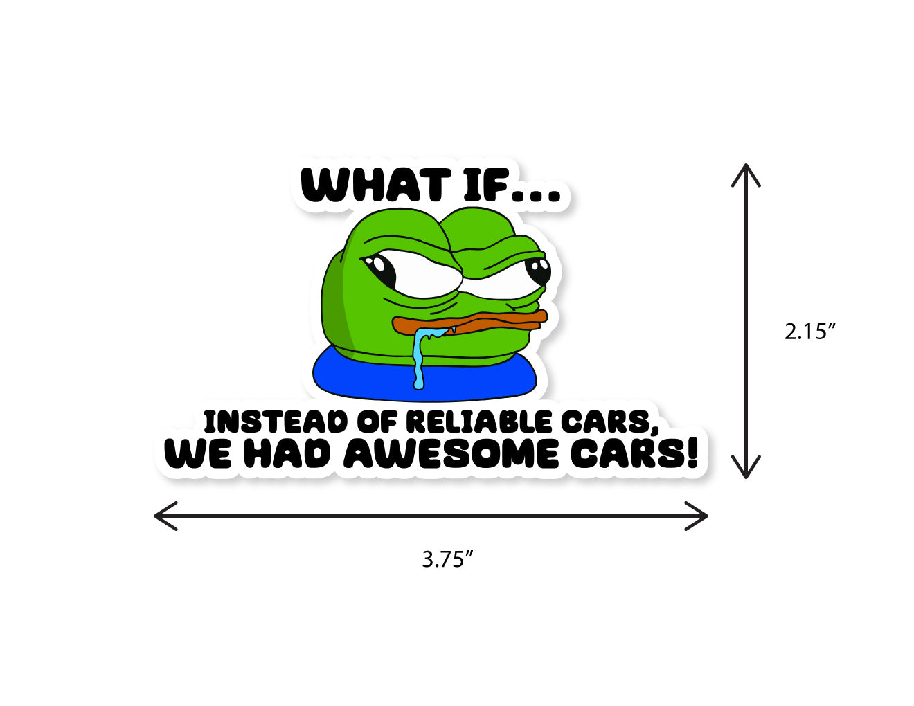 The "yeah...wHaT iF?" sticker is a badge of honor for those who have fully embraced the chaos of daily driving a shitbox. Measuring 3.75 inches, it’s the perfect way to remind the world that playing it safe has never been your style.