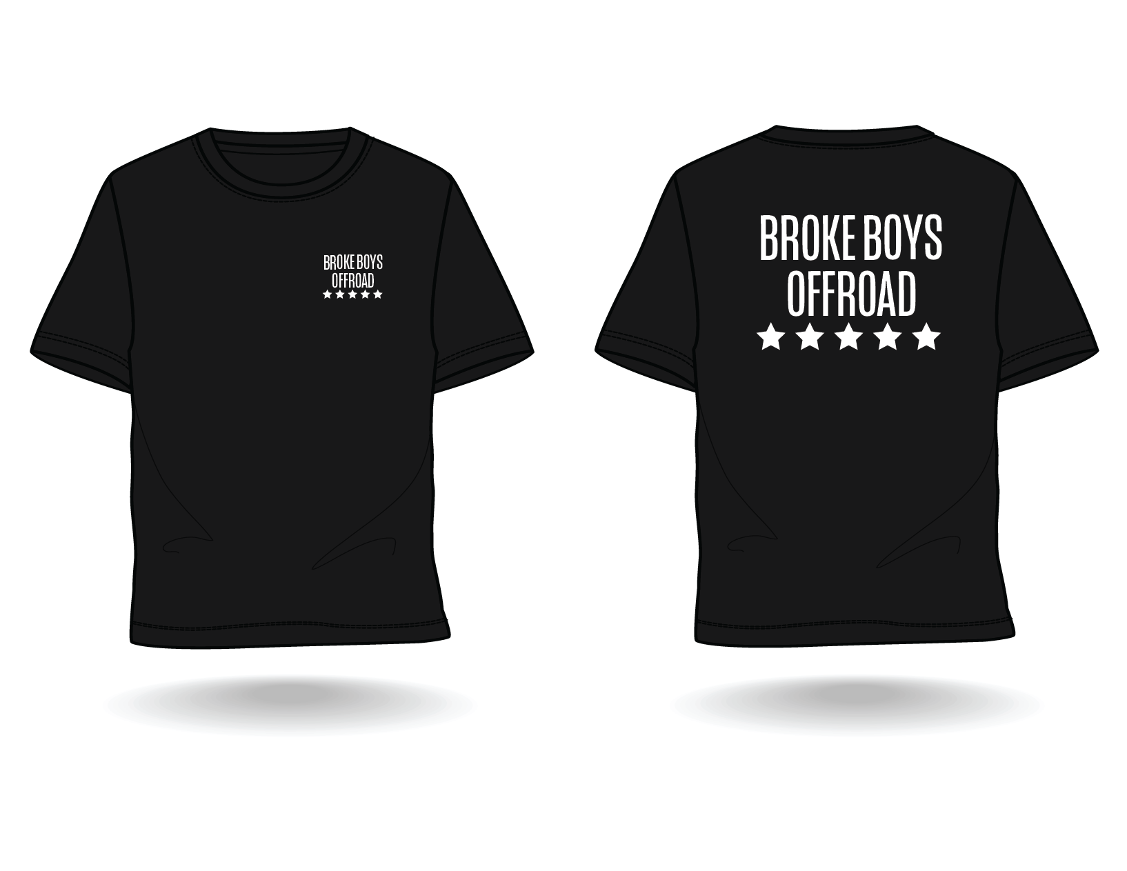 The front keeps it classic with a chest logo showcasing "Broke Boys Offroad" and our five iconic stars, while the back takes it to another level with a larger, bolder version of the same design. It’s the perfect mix of understated and eye-catching, designed for anyone who knows what it means to push limits and live life off the beaten path.