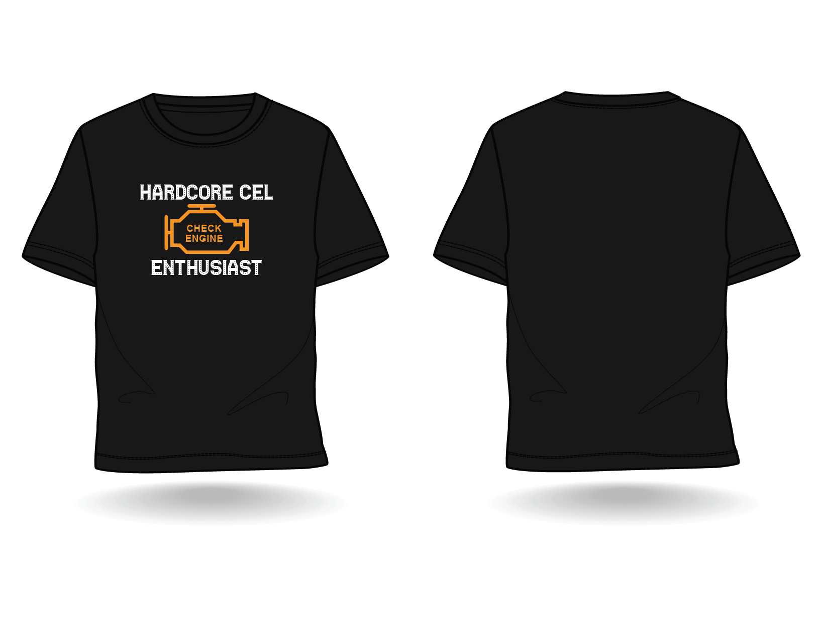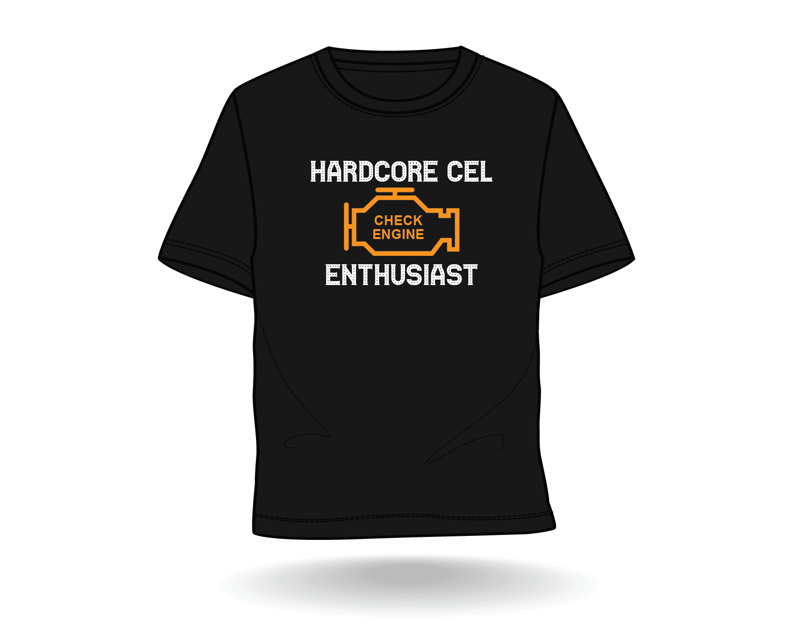 Introducing the "Hardcore CEL (Check Engine Light) Enthusiast" Tee – perfect for those who live life one dashboard warning at a time. This tee is for the die-hard car guys who see a glowing check engine light not as a problem, but as a personality trait.