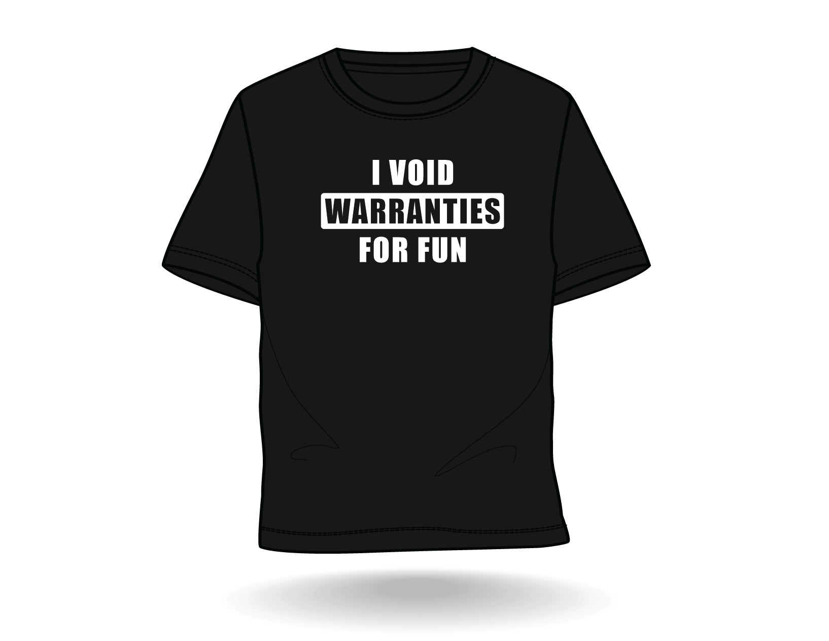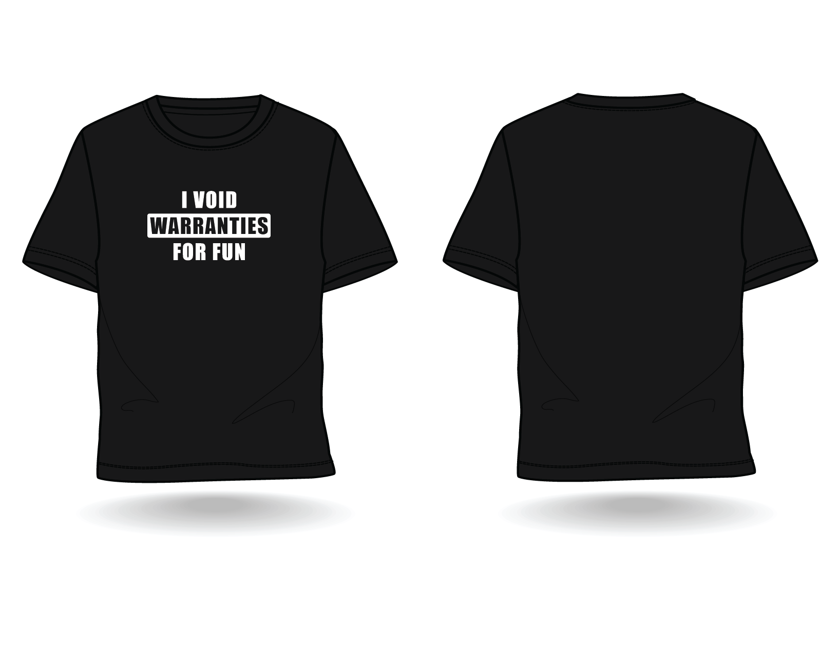 Featuring the bold statement “I Void Warranties for Fun,” this tee captures the essence of those who live to push limits, break rules, and swap out perfectly good parts for something better. It’s not just a hobby; it’s a way of life.