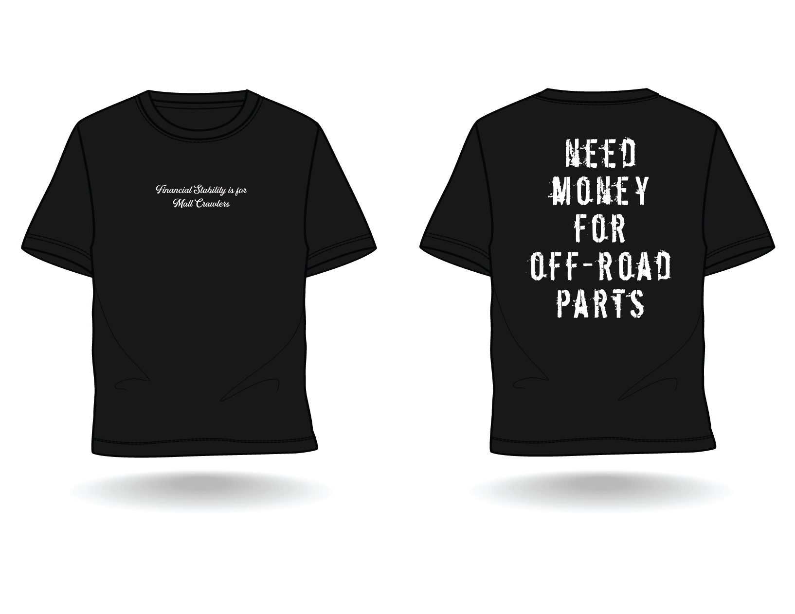 The "Need Money for Off-Road Parts" Tee – because who needs financial stability when you're busy saving up for that next big mod you've been eyeing? This shirt is for the off-roaders who prioritize mods, repairs, and the thrill of adventure over anything else.