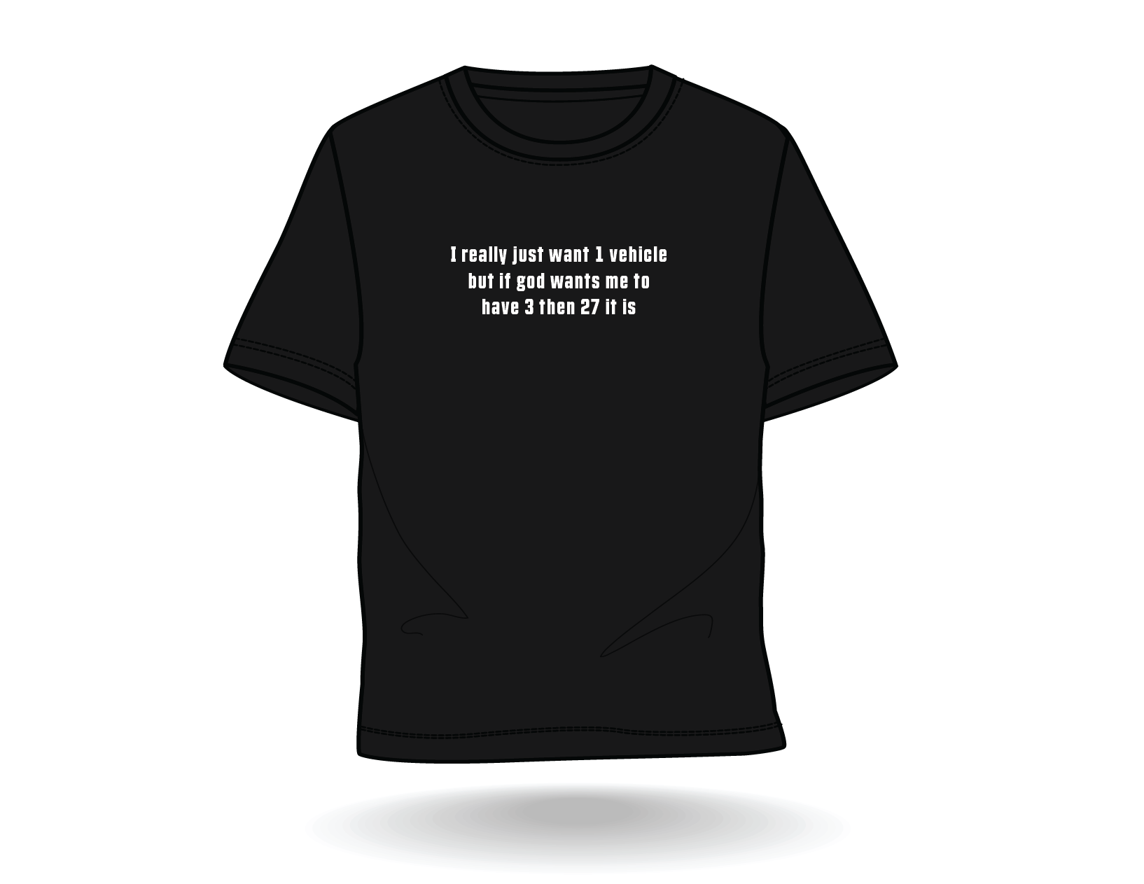With the bold statement, “I really just want one vehicle but if God wants me to have 3, then 27 it is,” this tee speaks to every off-roader, car enthusiast, and Facebook Marketplace addict who simply can’t walk away from a good project, no matter how much space it takes up. It’s a testament to that unspoken rule – one rig is never enough, and soon you’ve got a fleet of shitboxes that will (eventually) run... maybe.