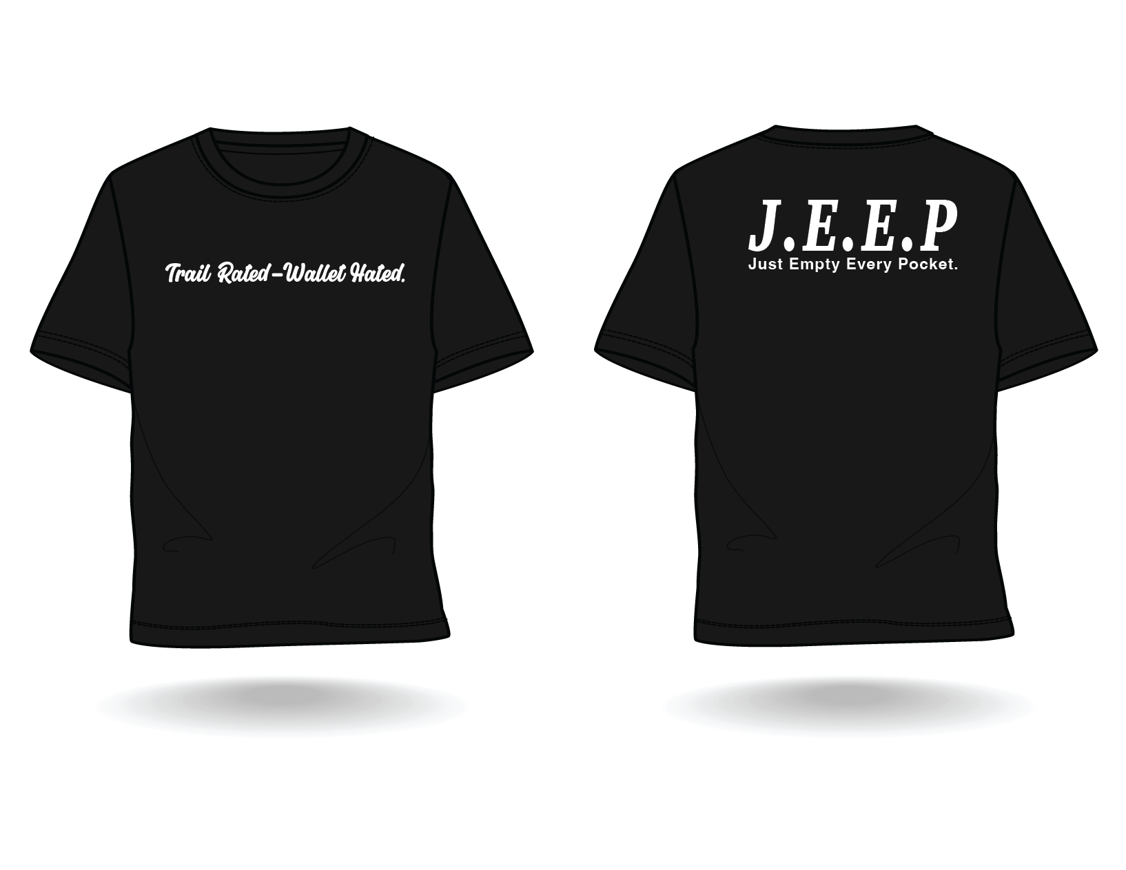 The "Trail Rated - Wallet Hated" Tee – a true badge of honor for jeepers alike who know adventure comes at a price. This shirt is for those who live to hit the trails, even if it means their wallet takes the brunt of the punishment.